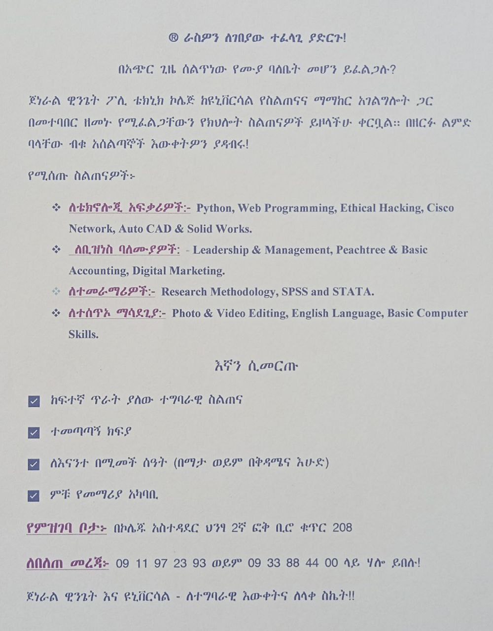 ለአጫጭር ጊዜ ስልጠና ፈላጊዎች በሙሉ